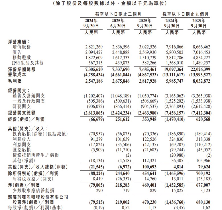 The total net revenue was RMB 7.69 billion (USD 1.08 billion), a year-on-year increase of 5%, with market expectations at RMB 7.654 billion. Among this, the advertising revenue was RMB 2.57 billion (USD 361 million), a year-on-year increase of 23%.
