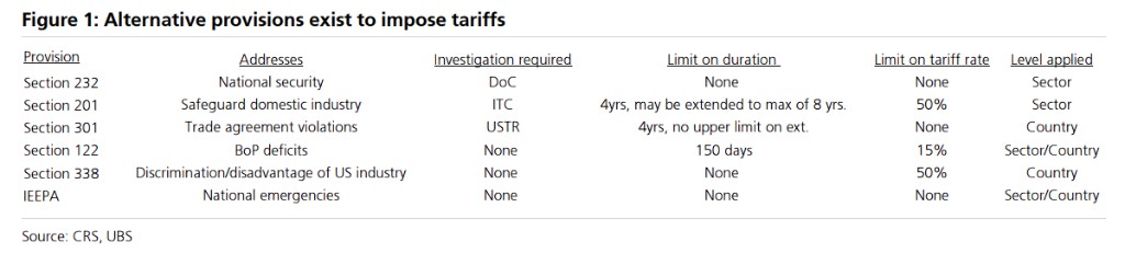 UBS's report detailed the legal tools that the Trump administration might use to rebuild its tariff structure: