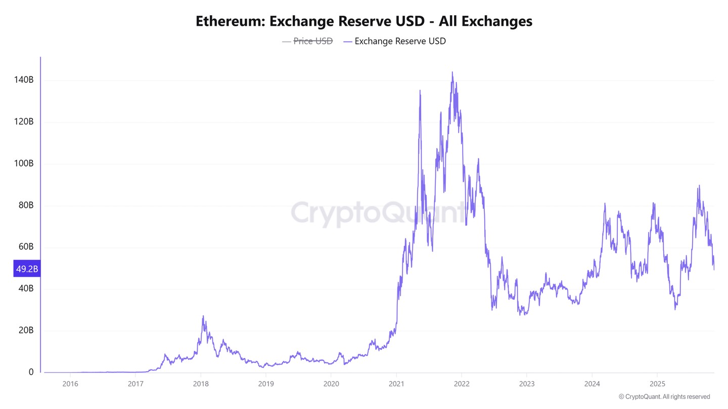 Exchange Reserve USD shows a notable 9.75% decline, as of writing, which reveals a clear reduction in available supply on trading platforms.