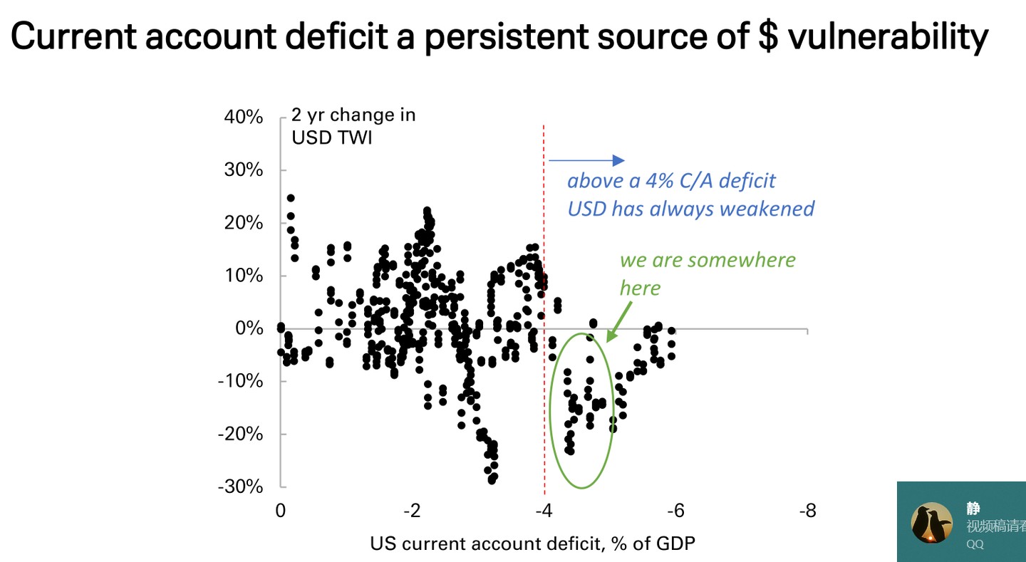 The balance of payments situation in the United States is a long-standing structural weakness. The report emphasizes that the current account deficit is a source of ongoing vulnerability for the U.S. dollar. Historical data reveals a grim pattern: whenever the U.S. current account deficit exceeds 4% of GDP, the dollar invariably weakens. The report's charts suggest that the U.S. is currently near this danger zone.