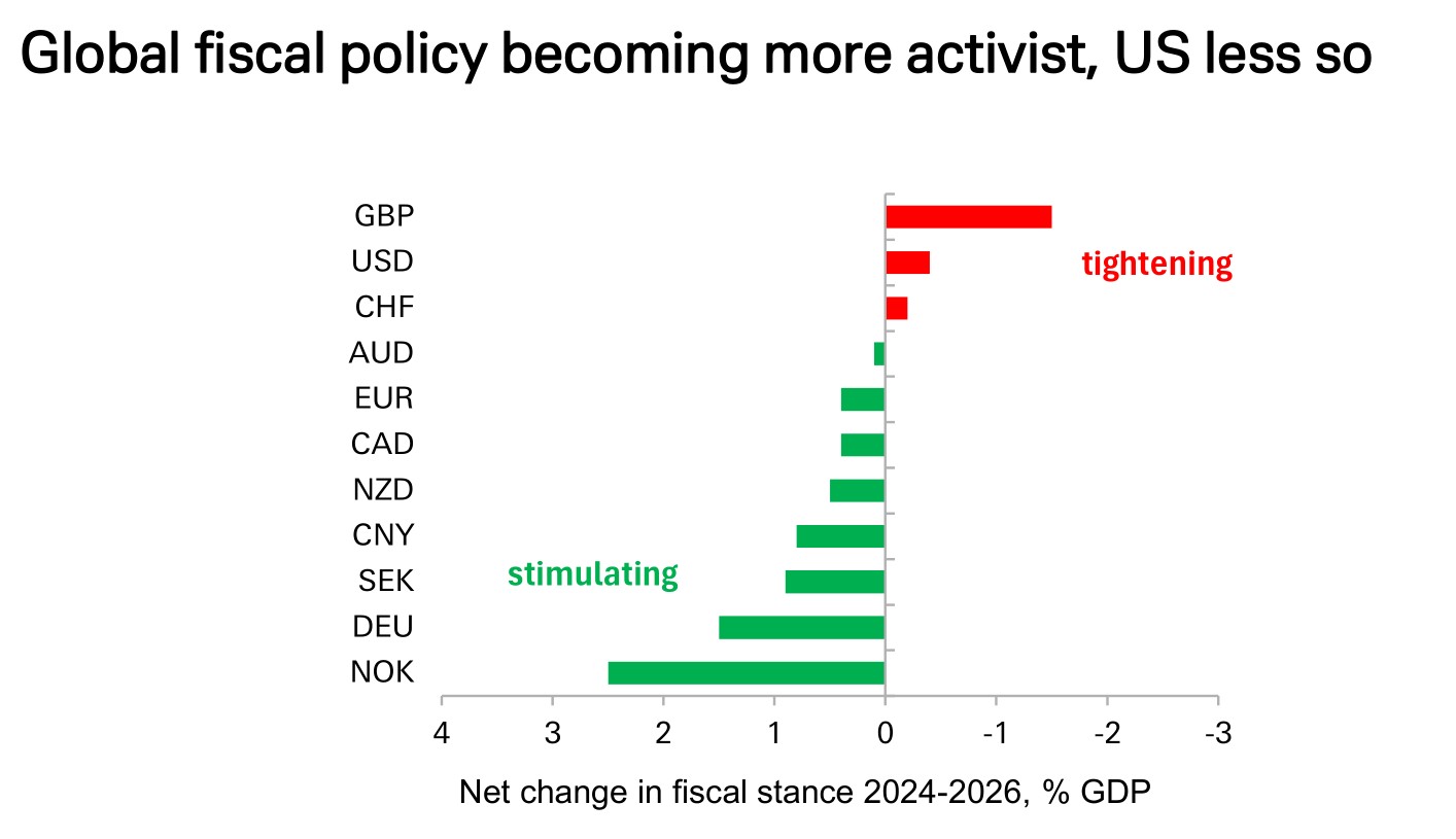 In addition, from the perspective of fiscal policy, global trends are also changing. Data shows that during the period from 2024 to 2026, the fiscal stance in the United States will tighten, while fiscal policies in regions such as the Eurozone and the UK will be more stimulative. This pattern of “more aggressive global fiscal policy, while the U.S. remains relatively conservative” will further weaken the relative growth advantage of the U.S. economy, thereby putting pressure on the U.S. dollar.