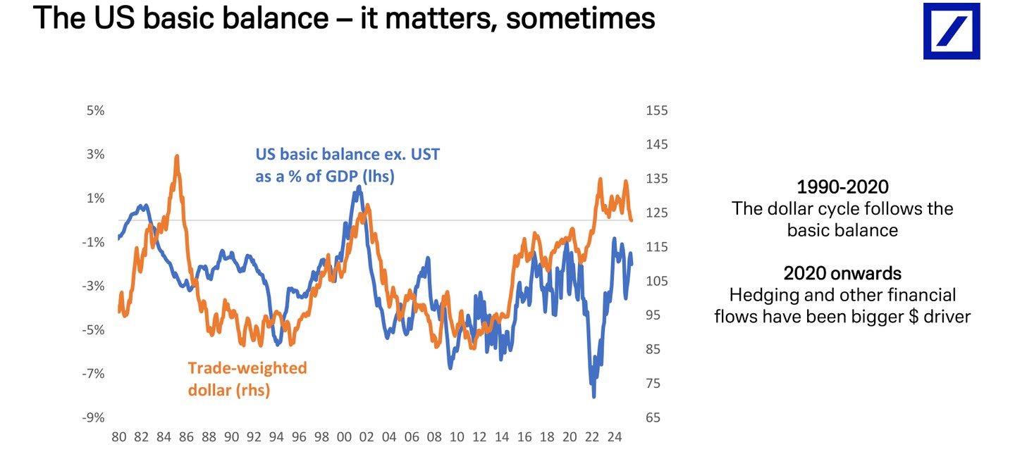 More concerning is the structural change in capital flows. Since 2020, the dominant factors driving the dollar's movement have shifted from traditional balance of payments fundamentals to hedging behavior and other financial flows. Data shows that the behavior patterns of foreign investors when purchasing U.S. assets have fundamentally changed.