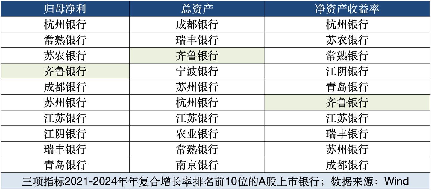 Xinfeng selected the compound annual growth rates of net profit, assets, and return on equity of A-share listed banks over the past three years, finding that QLB ranked fourth, third, and sixth among 42 peers, respectively.
