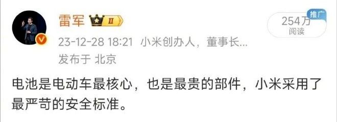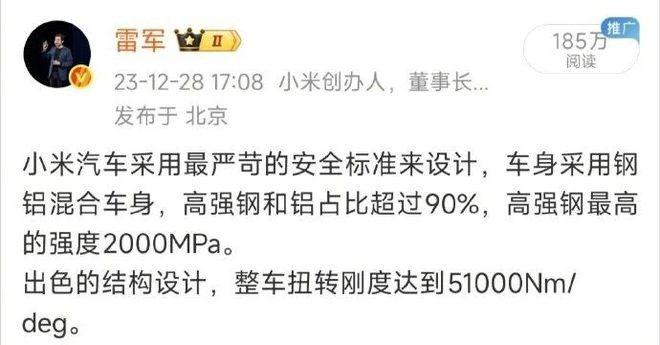 On November 16th, Lei Jun posted multiple Weibo messages, reiterating Xiaomi's automotive safety design philosophy.