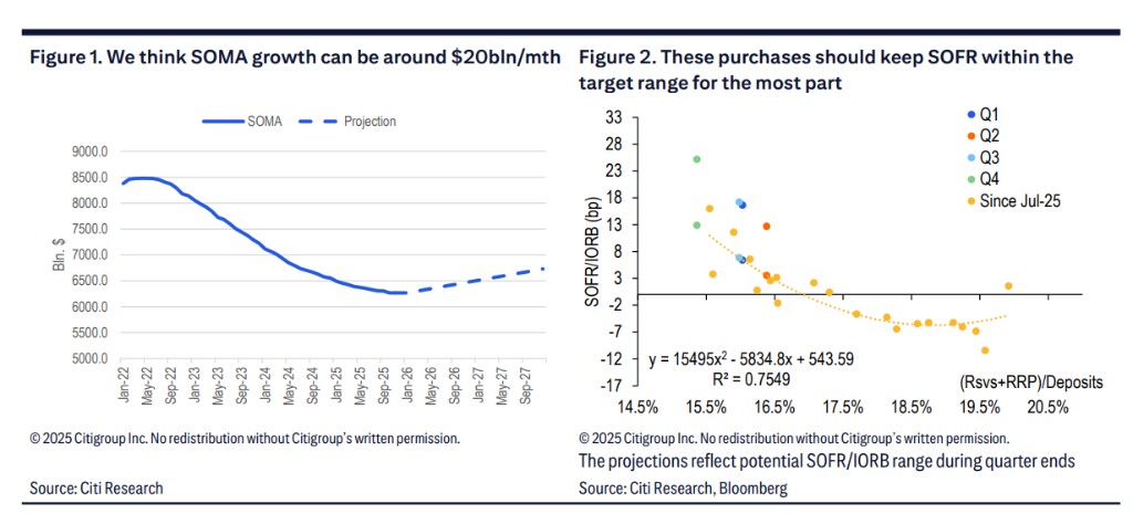 Citigroup currently expects the Fed's balance sheet reduction to stop on December 1. The most likely path is for the Fed to announce more Treasury purchases at the January meeting, starting implementation on February 1.