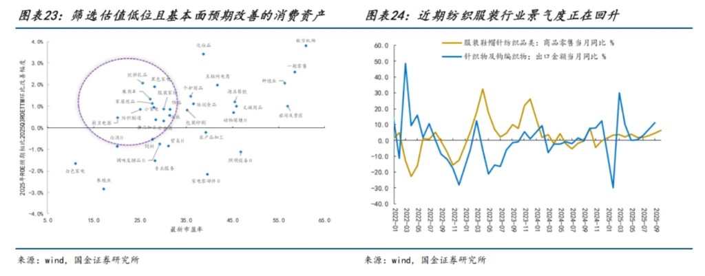 In this week's industry recommendations, we have added textiles and apparel in the consumer sector, with the new rationale being: in the recent style rebalancing, the internal logic of the market continues to spread, and some cyclical assets with low valuations have shown a demand for catch-up. Currently, most domestic demand sectors in China are indeed showing marginal improvements, and the future return of foreign exchange settlement funds may continue to drive the recovery of domestic demand sectors, which will maintain the allocation value of domestic demand assets represented by consumption during the style rebalancing process. From the perspective of the fundamentals of the textile and apparel industry, both the growth rate of domestic clothing consumption and the growth rate of external demand exports are maintaining a state of improving prosperity.