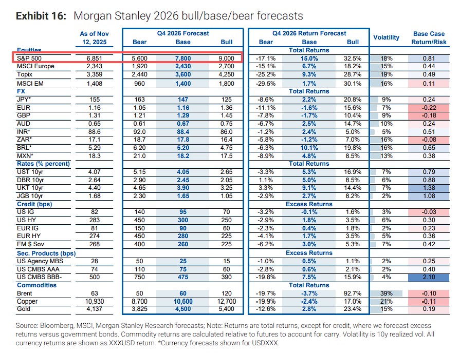 Morgan Stanley's major outlook: 2026 is the "year of risk reboot," with strong earnings in U.S. stocks and a resonance of the AI investment cycle, the S&P 500 may rise to 7,800 points!