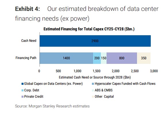 How will this massive investment be financed? The report estimates that while about half of the funds will come from the operating cash flow of tech giants, there remains a financing gap of up to $1.5 trillion. This gap needs to be filled through various credit channels, including: