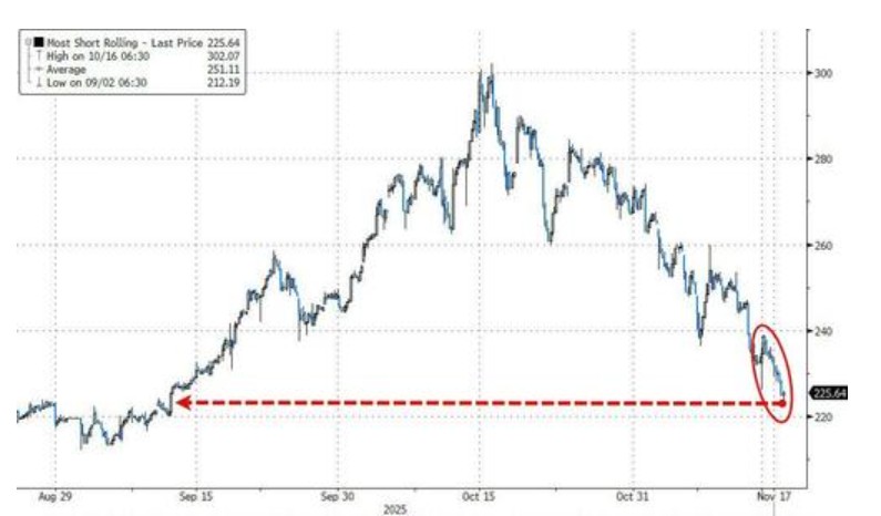 On Monday, November 17th local time, a severe sell-off swept through the U.S. financial markets, affecting nearly all asset classes from the soaring tech stocks to cryptocurrencies and even gold. Amid growing concerns about the sustainability of the AI boom and the economic outlook, investors rushed to sell risk assets, causing major stock indices to fall below key technical support levels, and market risk aversion surged sharply.