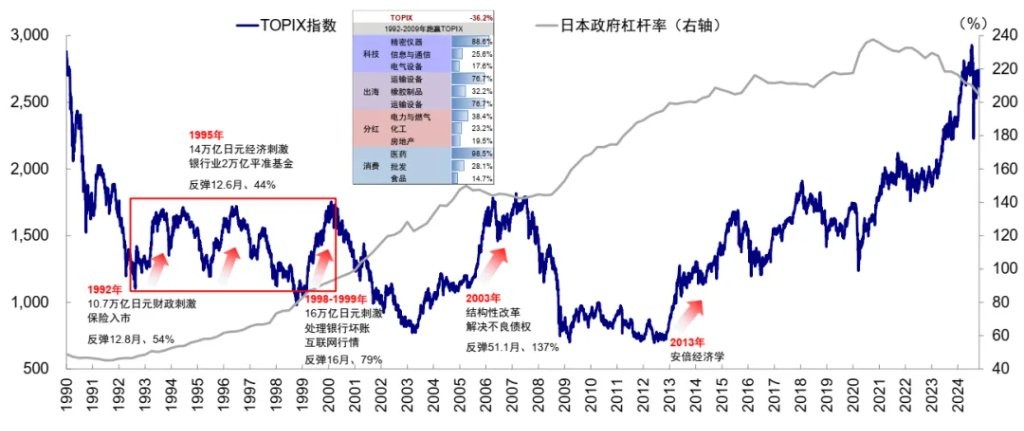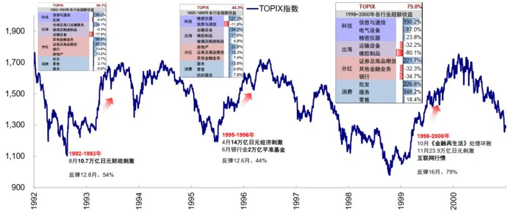 Looking at the three rounds of "bull markets" in the Japanese stock market during the 1990s, the initiation of bull markets in the era of sluggish growth and low interest rates is closely tied to the "necessary condition" of large-scale internal fiscal stimulus. If policies are more "targeted" and align with external industrial trends, they can be sustained for a longer period. Specifically,