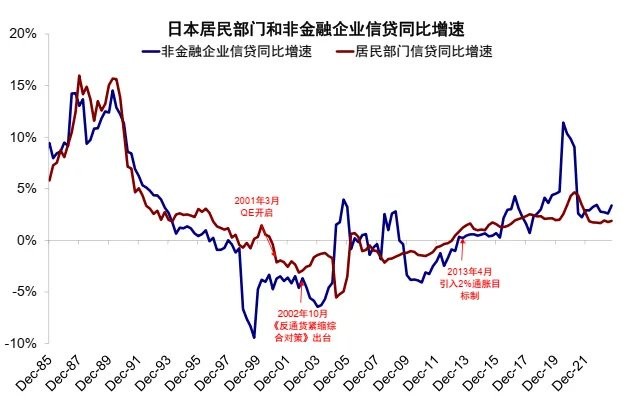 From a longer time perspective, the reason why Japanese stocks were able to experience three "bull markets" ten years after the 1989 bubble burst, but each time failed to break the "ceiling" and fell into a box range oscillation, fundamentally lies in: relying on policy stimulus and industrial trends can indeed drive phase increases, but when these driving forces gradually deplete and market sentiment and valuations also reach high levels, structural issues remain unresolved, making it difficult for the fundamentals to "pass the baton," and the drag begins to reappear. If some internal and external risk events are also exposed, it will further increase market pressure The key to breaking this "vicious cycle" and ushering in a bull market that has lasted for over 10 years to date was the implementation of Abenomics' truly "targeted" policies at the end of 2012, which gradually helped the economy escape the deflationary cycle. At that time, after twenty years of adjustment, the debt pressure on the banking system was gradually cleared. More importantly, the structural shift in monetary policy boosted inflation expectations, and fiscal policy shifted from infrastructure projects with continuously declining returns and the stock market, which could only serve as a confidence booster, to a focus on boosting income expectations. This led to a positive year-on-year growth rate in credit for households and businesses, allowing the economy to gradually emerge from deflation and enter a positive cycle. Meanwhile, the corporate governance measures during the Abe era improved corporate ROE, resulting in a rapid expansion of EPS for Japanese stocks after 2014, with earnings replacing valuations as the main support for the rise of Japanese stocks.