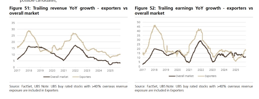 UBS expects listed companies' revenue to grow by 5% in 2026, which is basically in line with the bank's forecast for nominal GDP growth.