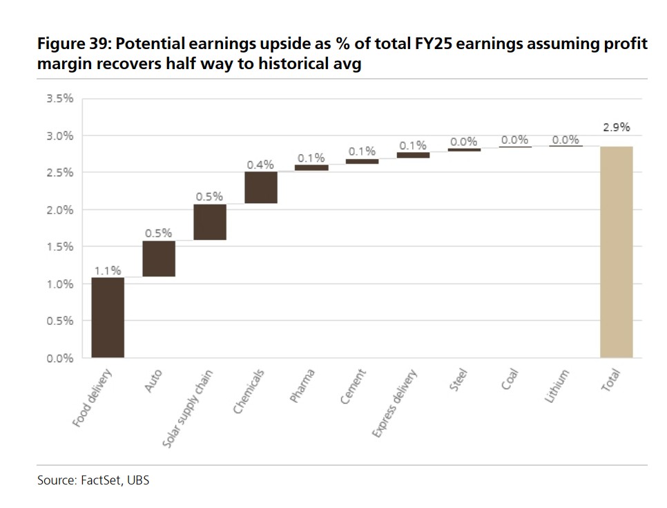 The report observes that there are already "early signs" of industry price recovery in sectors such as solar energy, lithium batteries, express delivery, and aviation. UBS's quantitative analysis suggests that if the profit margins of these "involution"-related industries can recover to half of their historical average levels, it could bring a "3 percentage point boost" to the overall earnings per share of MSCI China.