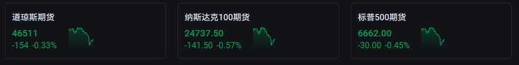 U.S. stock futures continue to decline, with Dow futures down 0.3%, Nasdaq 100 futures down 0.6%, and S&P 500 futures down 0.5%.