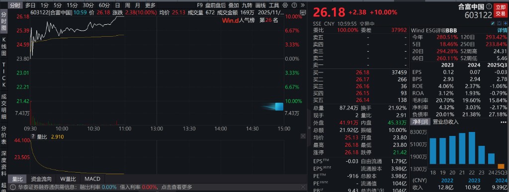 He Fu China hit the daily limit again, with a cumulative increase of over 290% in 15 trading days.