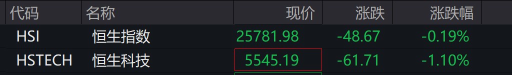 Hong Kong stocks showed mixed performance, with the Hang Seng Index up 0.14% and the Tech Index down 1.01%. Automotive and lithium battery stocks weakened, while domestic property stocks rose. XPeng fell 4.55%, and Trip.com Group fell 3.57%. On the upside, Baidu Group rose 2.34%, and Kuaishou rose 1.81%.