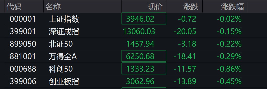 The three major indices collectively turned negative, with the ChiNext Index previously rising nearly 2%. Sectors such as tourism and hotels, food, retail, and textiles and apparel saw the largest declines, with nearly 4,000 stocks in the Shanghai, Shenzhen, and Beijing markets falling.