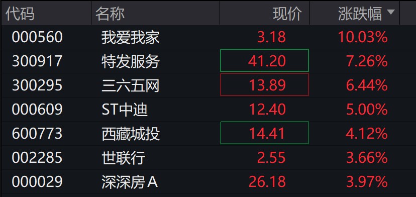A-share Wo Ai Wo Jia hit the daily limit, with Te Fa Service, Shi Lian Hang, Guang Da Jia Bao, Shen Shen Fang A, Vanke A, and others all surging.