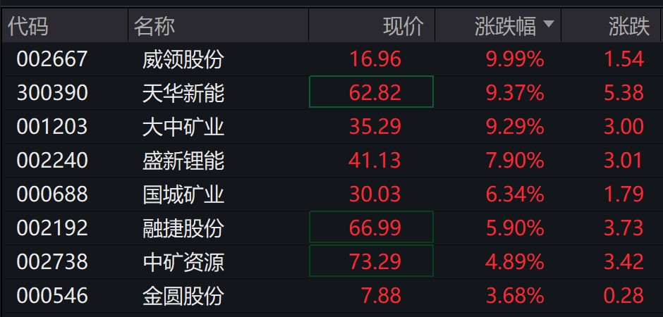 The three major A-share indices opened higher but fell back, with the ChiNext Index down 0.52%. Bank stocks strengthened, with China Bank's stock price reaching a new historical high. Lithium mining stocks surged again, while sectors such as real estate and Hainan Free Trade Zone led the gains; aquaculture, beauty care, food, and dairy sectors led the declines.