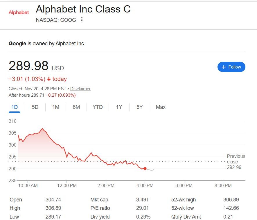 This release continues Google's strong momentum in the AI field this week. The Gemini 3 released on Tuesday achieved a "huge leap" in reasoning and coding capabilities, pushing the stock price of Google's parent company, Alphabet, to a historic high on Wednesday. On the day of the official announcement of Nano Banana Pro, the stock price rose nearly 5% in early trading but followed the market down in the afternoon, closing down about 1%, temporarily parting ways with the record high closing price set on Wednesday.
