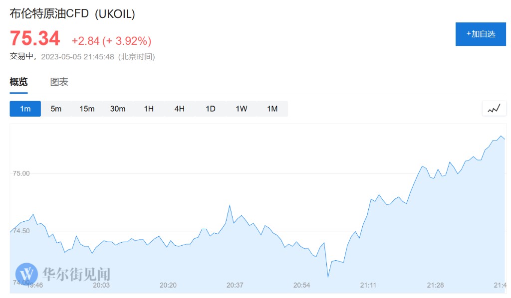 國際油價大漲,WTI 原油漲超 4%,布倫特原油日內漲 3.9%。