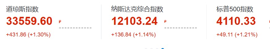 美股高開高走,截止發稿,三大指數均漲超 1%。