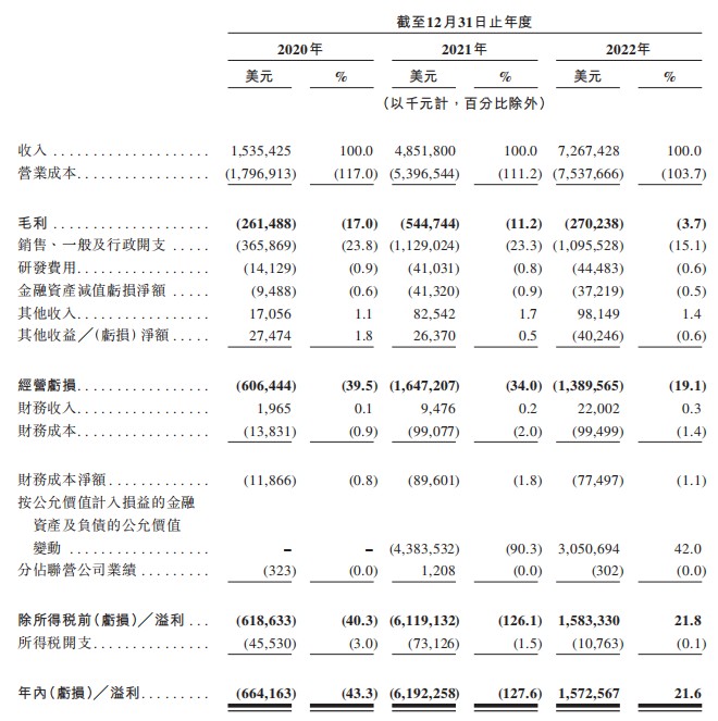 招股書數據顯示,極兔 2020 年營業收入為 15.35 億美元,2021 年為 48.52 億美元,2022 年為 72.67 億美元,三年營收近 1000 億人民幣。