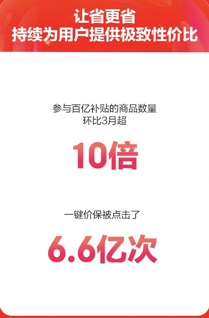 今年京東 618 期間,參與百億補貼的商品數量 “達到 3 月的 10 倍以上”。“一鍵價保”被點擊了超過 6.6 億次。