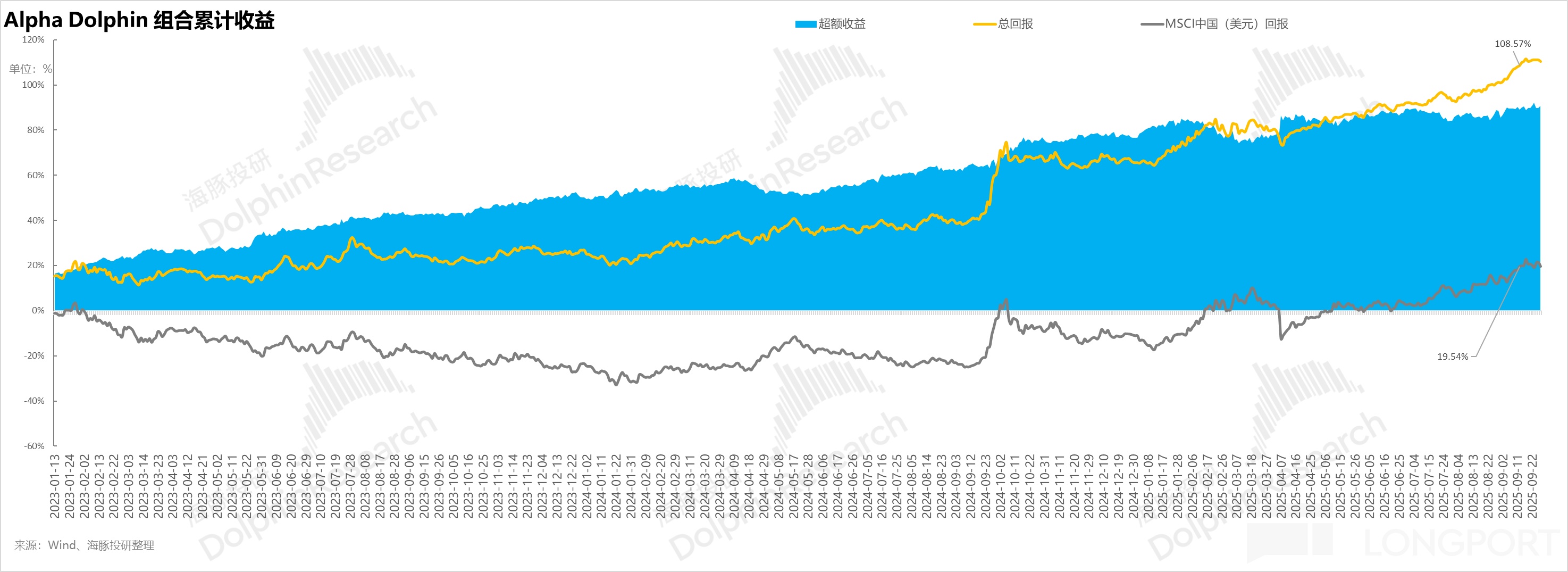 Since the portfolio began testing (March 25, 2022) until last weekend, the portfolio's absolute return is 110%, with an excess return of 90.8% compared to the MSCI China. From an asset net value perspective, Dolphin Research's initial virtual asset of $100 million has exceeded $215 million as of last weekend.