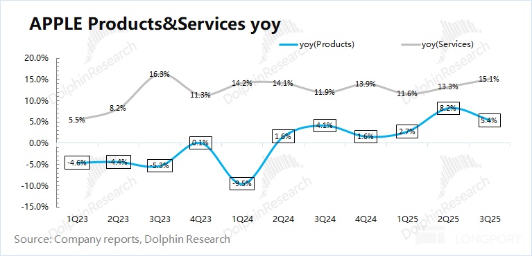 ② The growth rate of Apple's software business this quarter was 15.1%, accelerating. The resolution of the Google lawsuit this quarter directly released the risk of the company's software business.