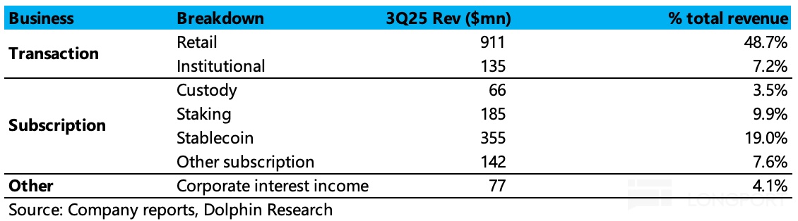 2. Subscription Generally, Guidance Meets Expectations: Short-term trading revenue is subject to temporary fluctuations, so we consider the performance of subscription revenue, mainly from staking, custody, and stablecoins, as a reflection of Coinbase's business development capability.