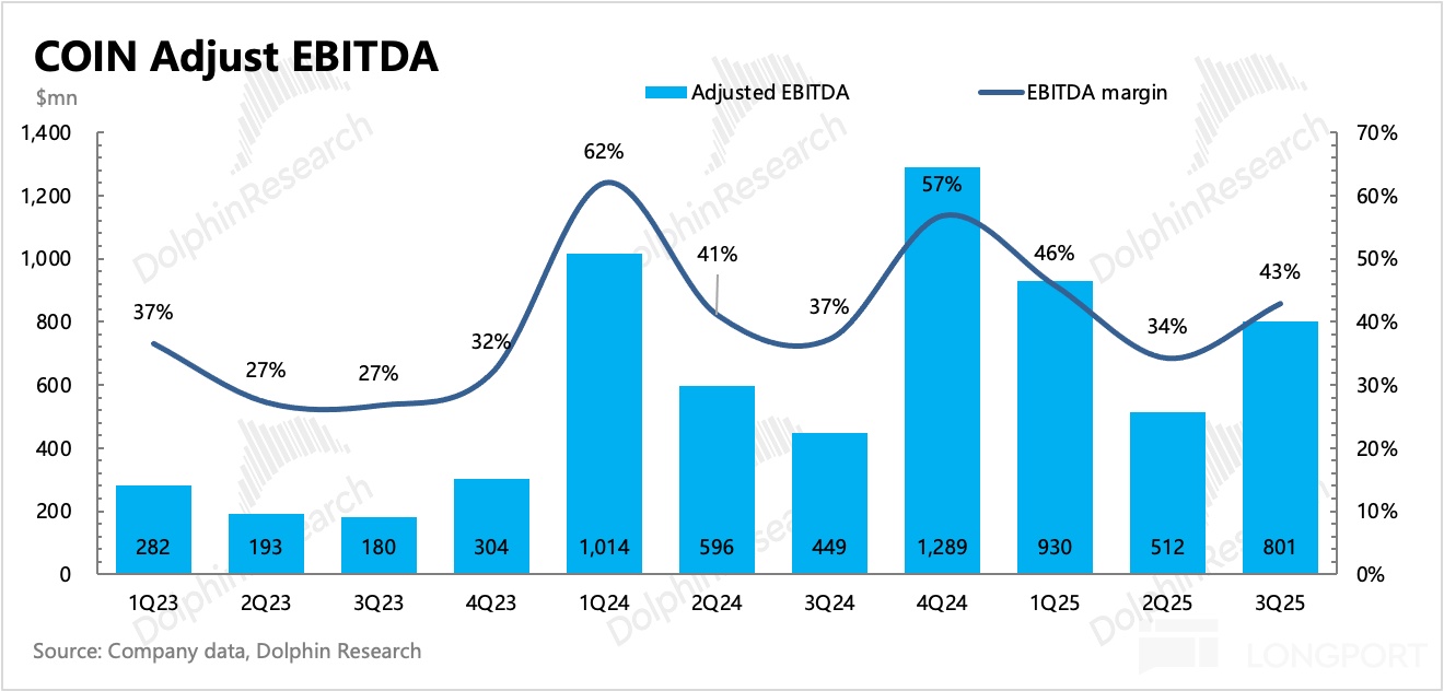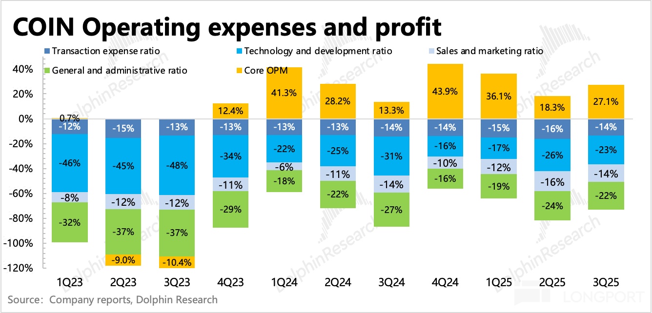 In Q3, although there were additional personnel costs from the acquisition of Deribit (approximately $30 million), and the proportion of USDC incentive subsidies given to users returned to 44%, the overall profitability still showed a quarter-on-quarter recovery, with an operating profit margin of 26%. Although there is still a gap compared to the peak of 45%, it has improved compared to the slight loss in the previous quarter.