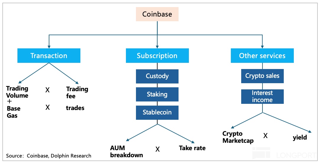 In terms of major revenue contributions, Coinbase has three main sources of revenue: trading revenue, subscription revenue, and others.