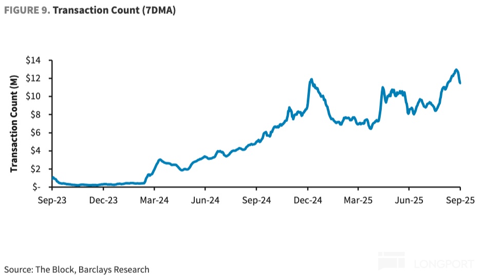 According to data from The Block, Base revenue allocated to Coinbase rose to approximately $14 million in Q3 (with a trading volume of 900 million transactions), compared to $12 million in the previous quarter (quarter-on-quarter growth rate of 17%). The company stated that it is exploring more possibilities for issuing native tokens for Base.
