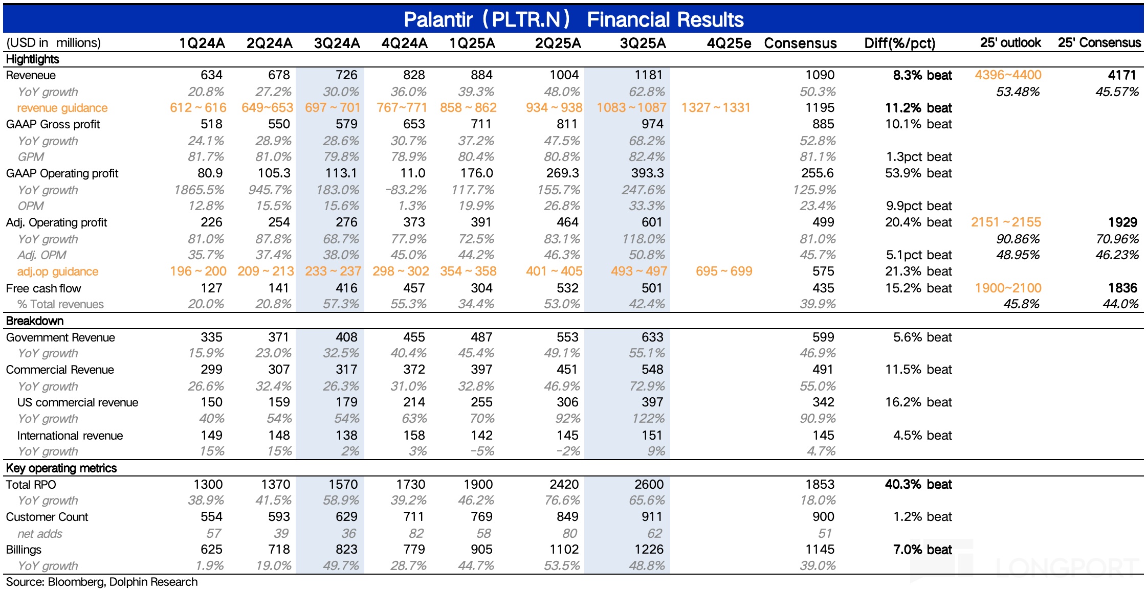 $Palantir Tech(PLTR.US) released its Q3 2025 earnings after the market closed on November 3rd, Eastern Time.