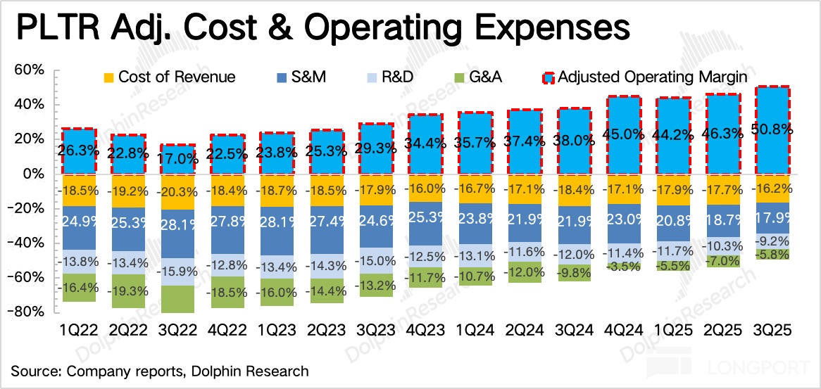 This is actually a very rare aspect. Palantir's model determines that business expansion requires simultaneous expansion of the personnel team, but it actually shrinks instead of growing. Even from the guidance, Q4 operating profit margin is implied to continue to increase by 2% quarter-on-quarter, showing Palantir's extreme operational efficiency.