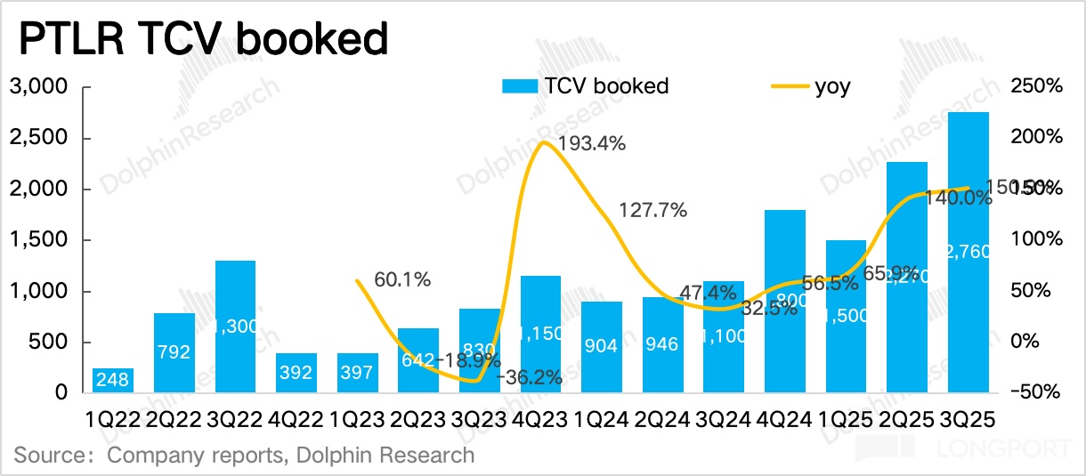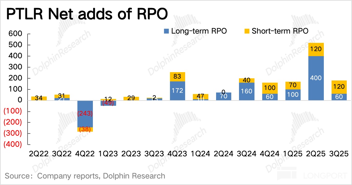 Palantir's remaining contract amount in the third quarter was $2.6 billion, with a net increase of only $180 million quarter-on-quarter, significantly weaker than the previous quarter.