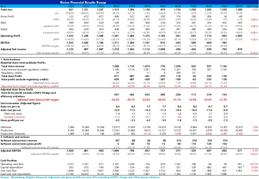 The following are the minutes of the Q3 2025 earnings call for $Rivian Automotive(RIVN.US) organized by Dolphin Research. For an interpretation of the financial report, please refer to "Rivian: Narrowing Losses, R2 Mass Production Imminent, Is Rivian's Dawn Here?"