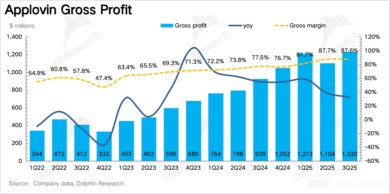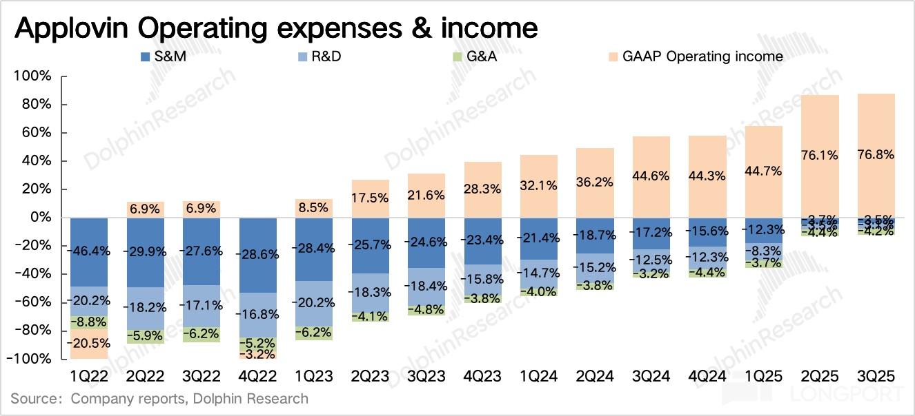 The Q4 guidance implies a slowdown in AppLovin's advertising growth, seemingly partially confirming the speculation that the initial response to the self-service advertising platform was mediocre. Dolphin Research believes that since the self-service advertising is still in the testing phase in specific regions, the Q4 guidance alone cannot fully demonstrate the driving effect of the self-service advertising. It is recommended to pay attention to the detailed discussion by management on the actual effects during the conference call.