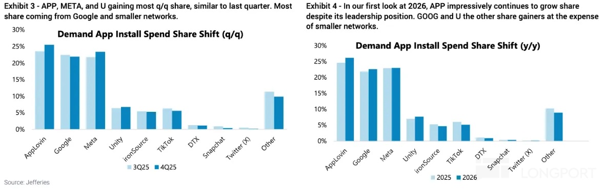 Of course, this may be related to the current scope of promotional testing, and the fourth quarter cannot fully reflect the effect of the self-service platform. According to third-party data (Northbeam), AppLovin's share in new e-commerce advertising placements only began to recover in mid-October, surpassing TikTok to become the third-largest advertising channel after Meta and Google. Of course, it is also best to pay attention to more detailed descriptions from management during the conference call about the self-service platform, especially feedback from small and medium-sized businesses.
