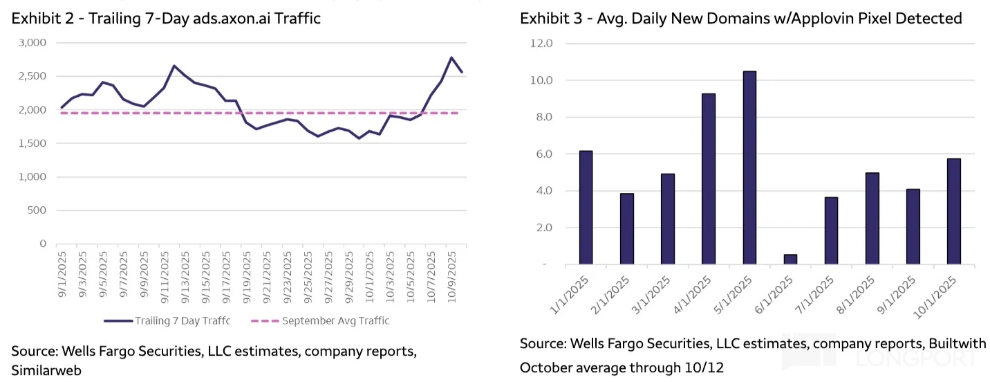 One key factor is that the effect of the self-service platform does not seem to be as "astonishing" as expected (as shown in the figure below, the peak traffic on the AXON website at the beginning of October when the self-service platform was launched is not much different from the peak in September). AppLovin's advertising self-service platform (Axon Ad Manager) is a one-stop traffic tool specifically designed for numerous small and medium-sized businesses, mainly to facilitate AppLovin's expansion and penetration into the larger non-gaming market.