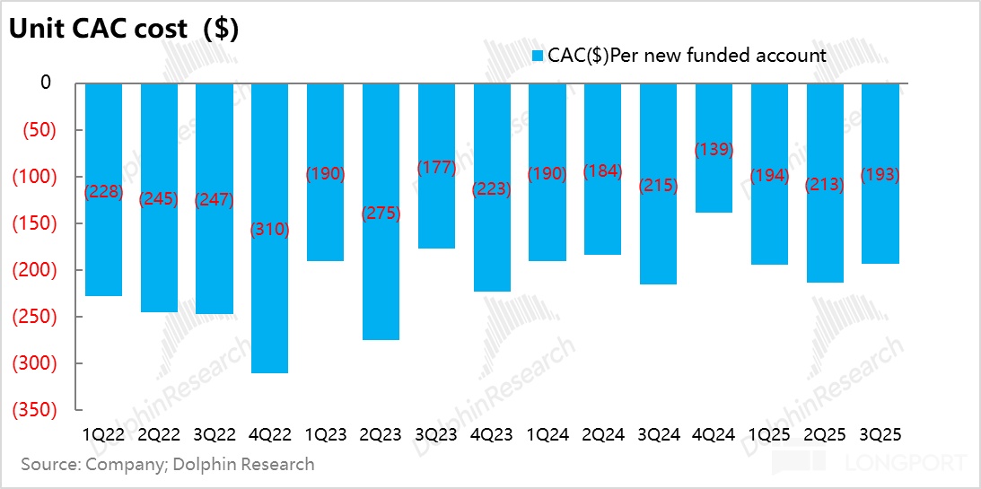 In the third quarter, net asset users increased by 300,000, with a single customer acquisition cost of $193, which also fell in the bull market, showing overall very good performance.