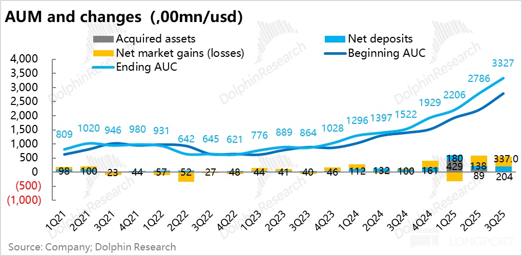 At the same time, new customer funds absorbed $20.4 billion, equivalent to a single customer's AUM rising to $68,000. In other words, its customer acquisition is now beginning to penetrate the traditional so-called "old money" group.