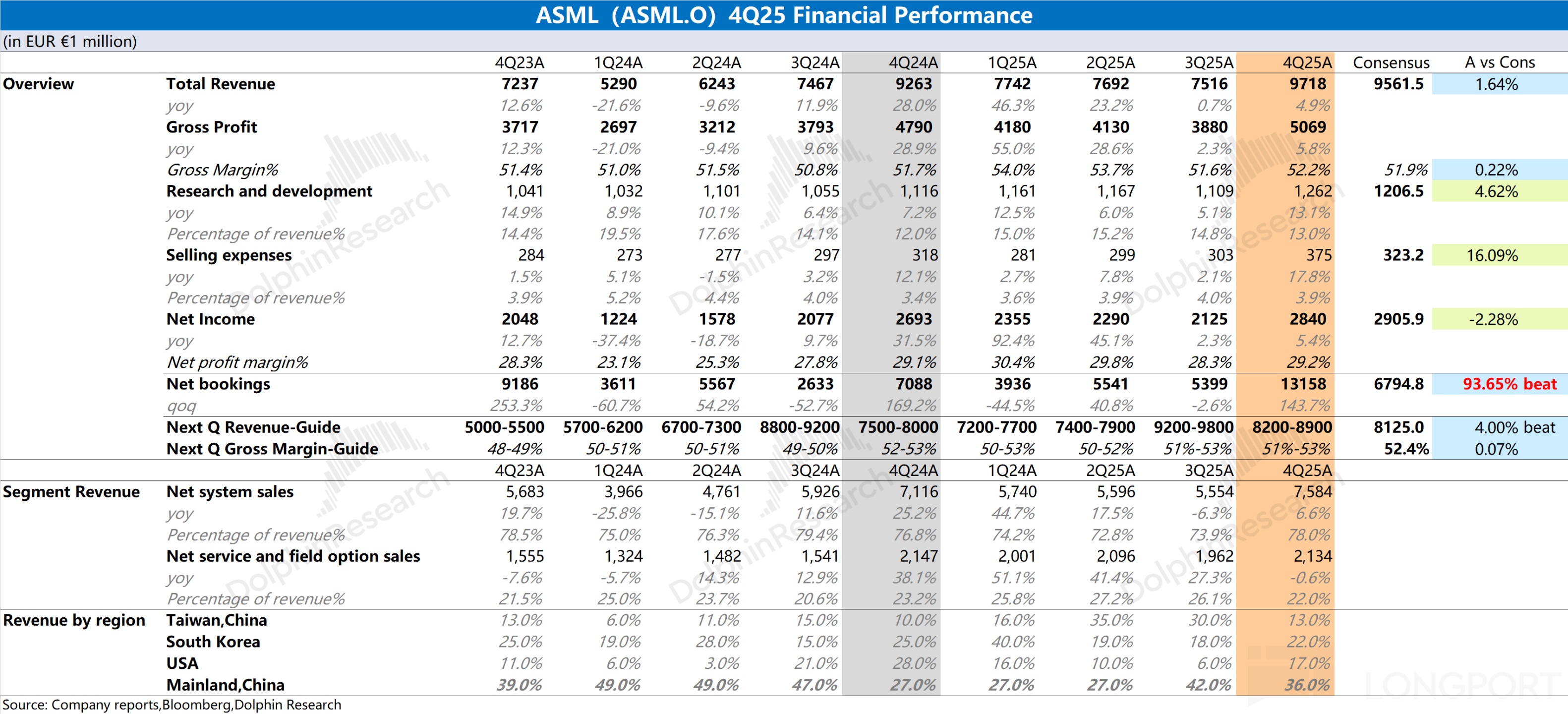 Below is Dolphin Research's compiled transcript of ASML's Q4 2025 earnings call. For our earnings First Take, see 阿斯麦 ASML:存储爆单,光刻机的超级周期也来了!