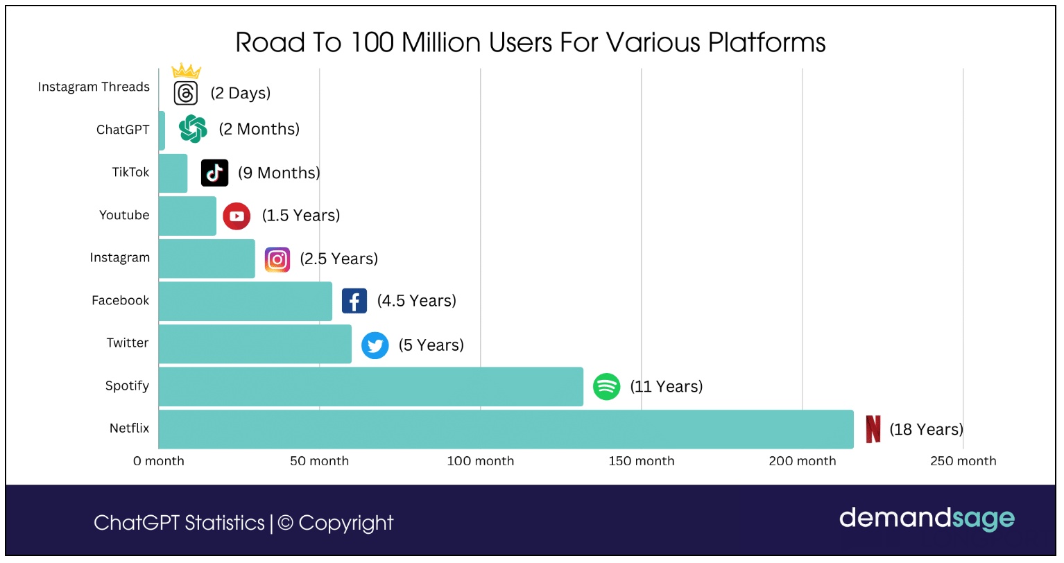 整个 AI 互联网基建打底,这一轮生成式 AI 的用户教育,就相比前几轮 PC、移动、视频互联网都快了很多。第一个跑出来的 AI 原生应用 ChatGPT,只花了 2 个月就实现了用户破亿,这比上一个同样靠软件技术突破而改变人机交互样式的 TikTok 还要少花半年时间。这背后是全球前沿模型紧紧咬合的你追我赶,中国的模型厂在这场较量中也毫不逊色。