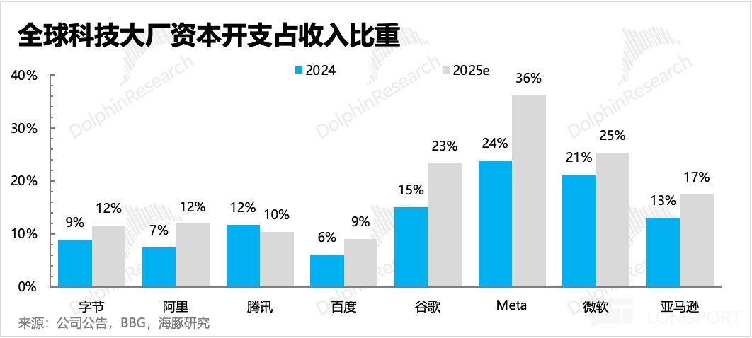 3)相比北美大厂,中国巨头们的投入没有那么疯狂,投入产出的压力也要更小,未到需要担心现金流、利润崩塌的程度。