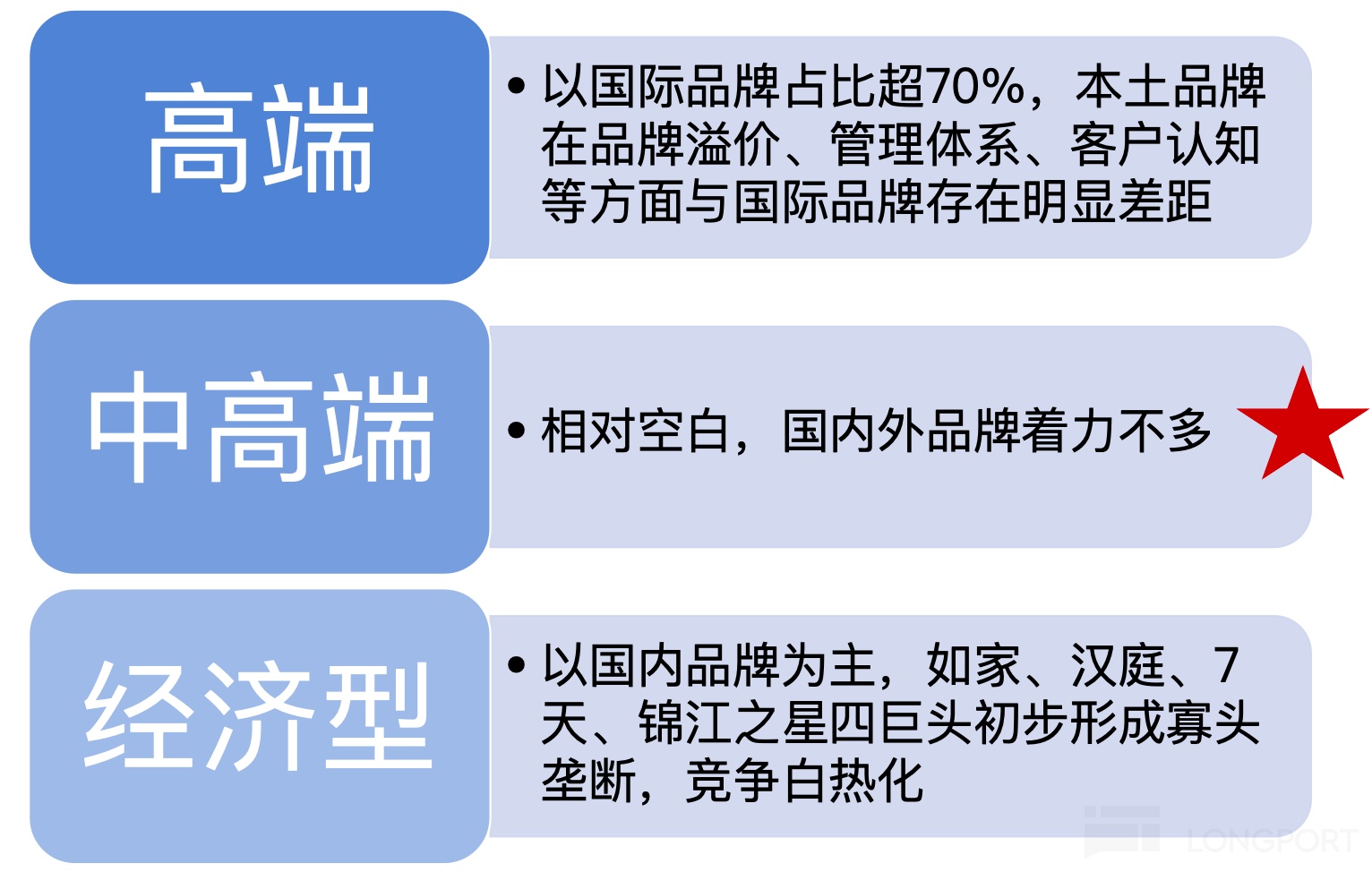 在这个背景下,亚朵主动放弃了经济型和高端酒店,直接切入当时仍处于蓝海市场的中高端赛道,进行差异化竞争。