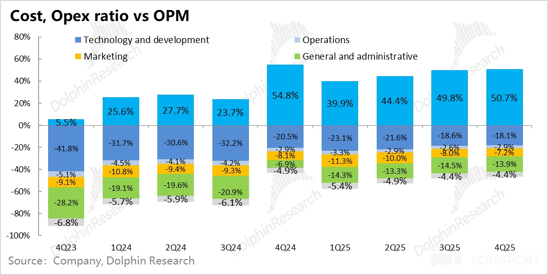 四季度,公司费用端基本兑现控费承诺:基本收入环比 0 增长,费用 0 增长,这里主要是占比最大的研发费用稳住,同时管理费用没有进一步增长。