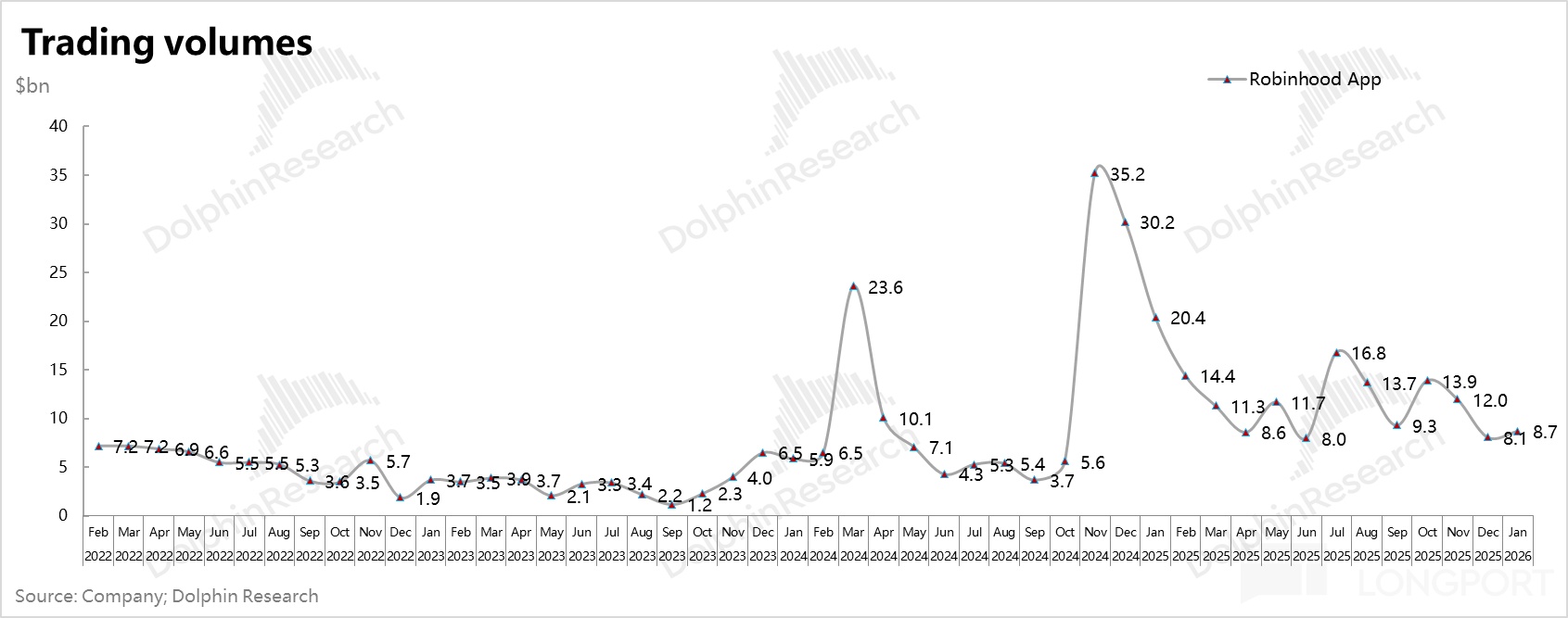 按 1 月最新经营数据,罗宾汉股票和期权交易已经回升,甚至虚拟资产交易也开始触底回升,在虚拟资产不进一步下行的情况下,海豚君认为风险已相对可控。