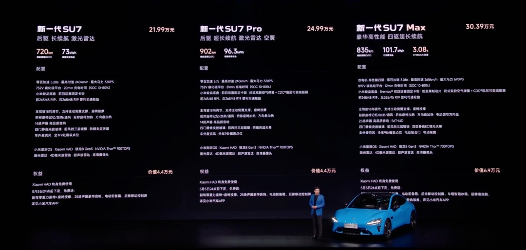 至于近期新一代 SU7,实际上是 “中期改款”。外观变化不大,主要是对硬件升级并进行小幅提价,从当前官网预计至 5-6 月份左右的交付时间来看,也并不是 “爆款产品”。